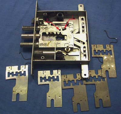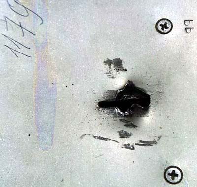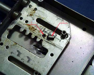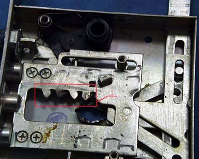 фотографии. Красным отмечены погнутая гребенка хвостовика ригеля.