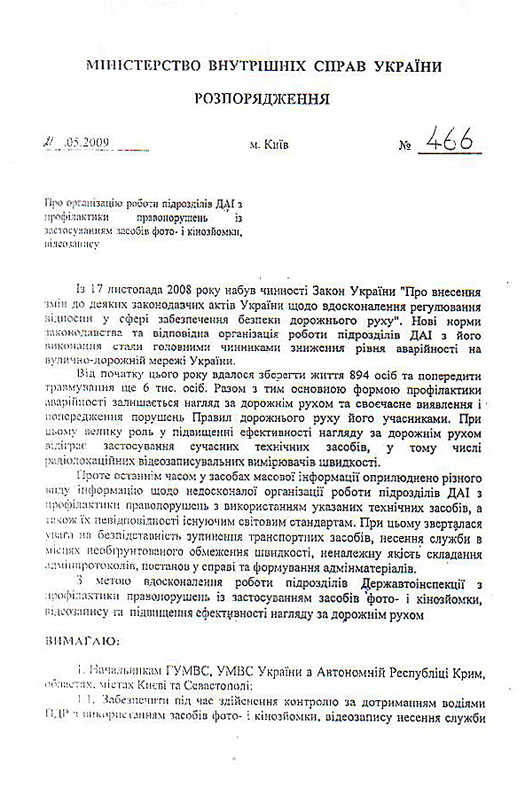Распоряжение МВД: